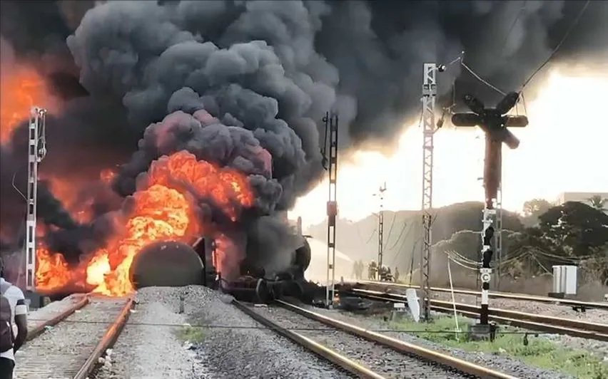 തിരുവള്ളൂരിലെ മണലി ഹാള്ട്ട് റെയില്വെ സ്റ്റേഷനിൽ നിന്ന് തിരുപ്പതി മേഖലയിലേക്ക് പോവുകയായിരുന്ന ചരക്കു ട്രെയിനാണ് അപകടത്തിൽപെട്ടത്. ട്രെയിനിന് തീപിടിച്ചതോടെ സമീപ പ്രദേശങ്ങളിലുള്ളവരെ ഉടൻ തന്നെ സ്ഥലത്ത് നിന്ന് സുരക്ഷിത സ്ഥാനങ്ങളിലേക്ക് മാറ്റിയത് അപകടത്തിൻ്റെ തീവ്രത ഒഴിവാകാൻ സഹായകമായി. സംഭവത്തിൽ റെയിൽവെ അന്വേഷണം ആരംഭിച്ചു.