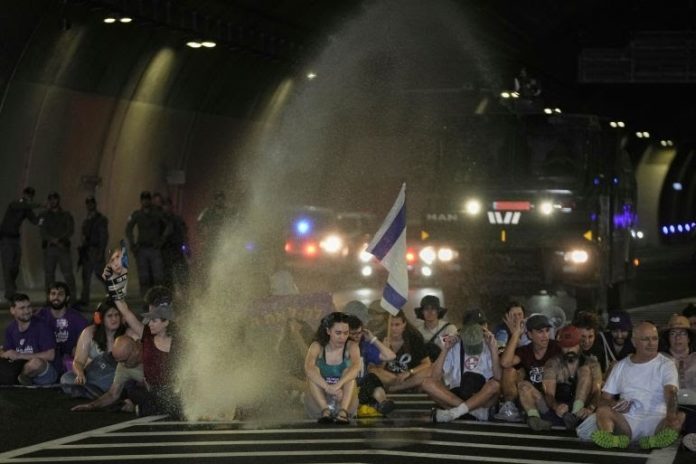 രാഷ്ട്രീയക്കാരുടെ വീടുകളുടെയും സേനാ ആസ്ഥാനങ്ങളുടെയും പുറത്തും പ്രധാന റോഡുകളിലും ജനം ഒത്തുകൂടി. ഗതാഗതം സ്തംഭിപ്പിച്ചവരെ പിരിച്ചുവിടാൻ പോലീസ് ജലപീരങ്കി ഉപയോഗിച്ചു. 32 പേരെ പോലീസ് അറസ്റ്റുചെയ്തു.പ്രക്ഷോഭത്തിന് ഐക്യദാർഢ്യം പ്രഖ്യാപിച്ച് ഏതാനും ഭക്ഷണശാലകളും തിയേറ്ററുകളും അടച്ചിട്ടു. 2024 സെപ്റ്റംബറിൽ ആറു ബന്ദികളെ ഗാസയിൽ മരിച്ചനിലയിൽ കണ്ടെത്തിയതിനുശേഷം ഇസ്രയേലിൽ നടക്കുന്ന ഏറ്റവും ശക്തമായ പ്രക്ഷോഭമാണിത്. ഇത്തരം പ്രതിഷേധപ്രകടനങ്ങൾ ഇസ്രയേലിൽ അപൂർവമാണ്.2023 ഒക്ടോബർ ഏഴിന് ഹമാസ് ഇസ്രയേലിൽനിന്ന് തട്ടിക്കൊണ്ടുപോയ 251 ബന്ദികളിൽ 50 പേരെ ഇനിയും വിട്ടുകിട്ടാനുണ്ട്. ഇവരിൽ 20 പേരേ ജീവനോടെയുള്ളൂ എന്നാണ് കരുതുന്നത്. ഗാസയിൽ യുദ്ധം ശക്തമാക്കാനുള്ള ഇസ്രയേലിന്റെ തീരുമാനം ഇവരുടെ ജീവൻ അപകടത്തിലാക്കും എന്ന് പ്രക്ഷോഭകർ പറയുന്നു. സൈനികനടപടികൊണ്ട് ബന്ദികളെ തിരിച്ചുകിട്ടില്ലെന്നും കരാറിലൂടെ മാത്രമേ അതു സാധ്യമാകൂ എന്നും ടെൽ അവീവിലെ പ്രക്ഷോഭത്തിൽ പങ്കെടുത്ത മുൻ ബന്ദി അബ്രേൽ യെഹൂദ് പറഞ്ഞു.