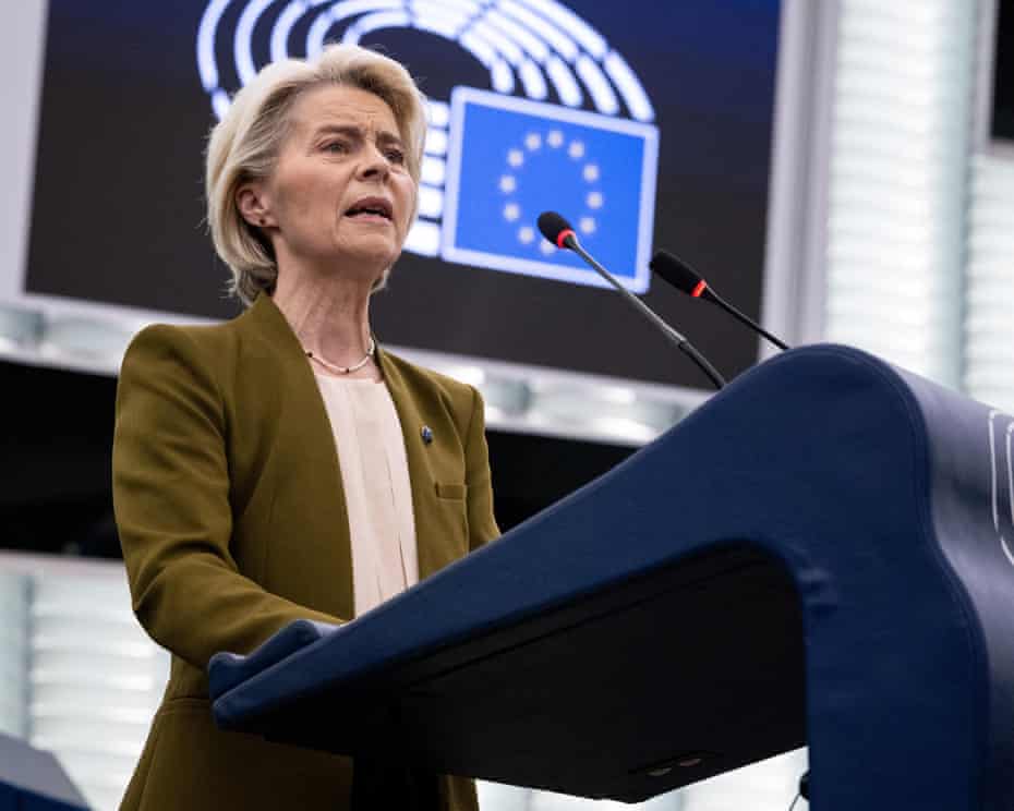 ‘മനുഷ്യനിര്മിത ക്ഷാമം ഒരിക്കലും യുദ്ധത്തിനുള്ള ആയുധമാകാന് കഴിയില്ല. കുട്ടികള്ക്കുവേണ്ടി, മനുഷ്യത്വത്തിനുവേണ്ടി ഇത് അവസാനിപ്പിക്കണം,’ ഫ്രാന്സിലെ സ്ട്രാസ്ബര്ഗില് നടന്ന യൂറോപ്യന് പാര്ലമെന്റില് വോണ് ഡെര് ലെയ്ന് പറഞ്ഞു. ഗാസയിലെ ജനങ്ങളോടുള്ള ഐക്യദാര്ഢ്യം സൂചിപ്പിക്കുന്നതിന് ഏകദേശം മൂന്നിലൊന്ന് നിയമസഭാംഗങ്ങള് ചുവന്ന വസ്ത്രം ധരിച്ചായിരുന്നു എത്തിയത്.