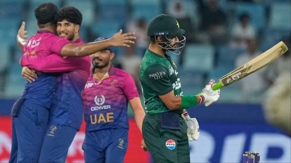 ഇന്നിങ്സിലെ അഞ്ചാം പന്ത് മുതല് തന്നെ യുഎഇ ബൗളര്മാര് പാക് താരങ്ങളെ ഡ്രസ്സിങ് റൂമിലേക്ക് മടക്കിത്തുടങ്ങി. 27 പന്തില് നിന്ന് 20 റണ്സെടുത്ത ക്യാപ്റ്റന് സല്മാന് ആഗയും 14 പന്തില് നിന്ന് 18 റണ്സെടുത്ത മുഹമ്മദ് ഹാരിസുമാണ് പാക് നിരയില് രണ്ടക്കം കടന്ന മറ്റ് താരങ്ങള്.മൂന്നാം വിക്കറ്റില് ഫഖര് സമാന് – സല്മാന് ആഗ സഖ്യം കൂട്ടിച്ചേര്ത്ത 61 റണ്സിന്റെ കൂട്ടുകെട്ടാണ് ടീമിന്റെ മാനം കാത്തത്. സയിം അയൂബ് (0), സഹിബ്സാദാ ഫര്ഹാന് (5), ഹസന് നവാസ് (3), ഖഷ്ദില് ഷാ (4) എന്നിവരെയെല്ലാം നിലയുറപ്പിക്കും മുമ്പ് യുഎഇ മടക്കി.