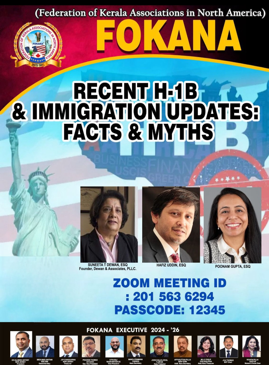 വ്യക്തത ഇല്ലാത്ത കാര്യങ്ങൾ പ്രചരിപ്പിക്കാതെ ഈ വിഷയത്തിൽ വിദഗ്ധരായവരെ കണ്ടെത്തി ശരിയായ അറിവ് പകരുക എന്ന ഉദ്ദേശവും ഇതിലൂടെ നിറവേറി. സുനിത ദിവാൻ (ഫൗണ്ടർ ഓഫ് ദിവാൻ ആൻഡ് അസ്സോസിയേറ്റ്സ്, 25 വർഷത്തിലേറെയായി കോർപറേറ്റ് ആൻഡ് ഫാമിലി ഇമ്മിഗ്രേഷൻ ലോ കൈകാര്യം ചെയ്യുന്നു), ഹഫീസ് ഉദ്ദീൻ (മാനേജിങ് അറ്റോർണി, ദിവാൻ ആൻഡ് അസ്സോസിയേറ്റ്സ്),പൂനം ഗുപ്ത (കൗൺസിൽ, ദിവാൻ അസ്സോസിയേറ്റ്സ്) എന്നിവരും ഫൊക്കാനയുടെ മുതിർന്ന നേതാക്കളും,മുൻ പ്രസിഡന്റുമാരും,ഭരണസമിതി അംഗങ്ങളും ഉൾപ്പെടെ നിരവധിപേർ വെബ്ബിനറിൽ പങ്കെടുത്തു.