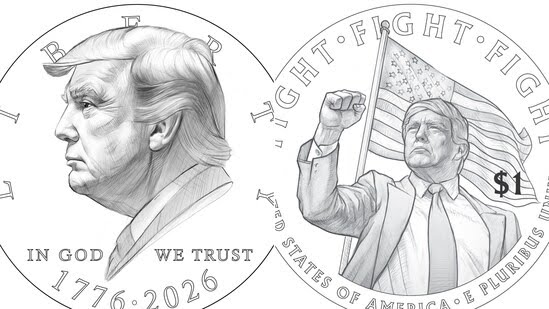 ഒരു വശത്ത്, മുഷ്ടി ചുരുട്ടി കൈ ഉയർത്തി ട്രംപിന്റെ ചിത്രവും ഫൈറ്റ്, ഫൈറ്റ്, ഫൈറ്റ് എന്ന വാചകവുമുണ്ട്. 2024-ലെ കൊലപാതക ശ്രമത്തിൽ നിന്നും രക്ഷപ്പെട്ട ശേഷം ട്രംപ് ഉച്ചരിച്ച വാക്കുകളാണ് ഇവ.മറു വശത്ത്, ട്രംപിന്റെ ചിത്രവും അതിന്റെ മുകളിൽ ലിബർട്ടി എന്നും താഴെ “1776–2026″എന്നും എഴുതിയിട്ടുണ്ട്.