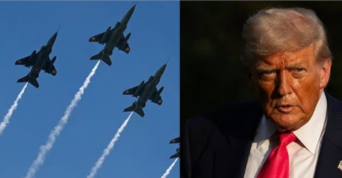 “ഇന്ത്യയെയും പാകിസ്താനെയും നോക്കൂ, അവർ ഏറ്റുമുട്ടുകയായിരുന്നു. ഏഴ് പുത്തൻ, മനോഹരമായ വിമാനങ്ങൾ വെടിവെച്ചിട്ടു,” ട്രംപ് പറഞ്ഞു. എന്നാൽ, ഏഴ് വിമാനങ്ങൾ നഷ്ടപ്പെട്ടത് ആർക്കാണെന്ന് ട്രംപ് വ്യക്തമാക്കിയില്ല.സംഘർഷം അവസാനിപ്പിച്ചില്ലെങ്കിൽ ഇരു രാജ്യങ്ങളുമായും യുഎസ് ഒരു വ്യാപാരവും നടത്തില്ലെന്ന് താൻ ഇന്ത്യൻ പ്രധാനമന്ത്രി നരേന്ദ്ര മോദിയോടും പാകിസ്താൻ പ്രധാനമന്ത്രി ഷെഹ്ബാസ് ഷെരീഫിനോടും പാക് സൈന്യത്തിലെ ഫീൽഡ് മാർഷൽ അസിം മുനീറിനോടും പറഞ്ഞതായി ട്രംപ് അവകാശപ്പെടുന്നു.