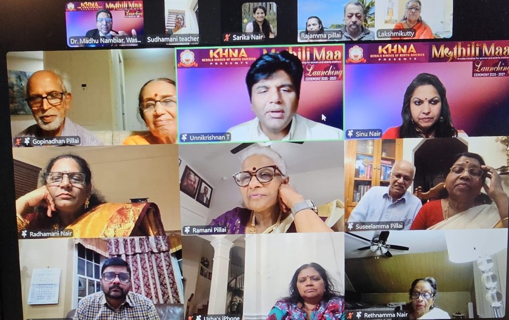 ഫ്ലോറിഡ: നവംബർ7, വെള്ളിയാഴ്ച — കേരള ഹിന്ദുസ് ഓഫ് നോർത്ത് അമേരിക്കയുടെ (KHNA)യുടെ വനിതാ സംരംഭമായ മൈഥിലി മാ 2025–2027യുടെ ഔദ്യോഗിക ഉദ്ഘാടനം സൂം മീറ്റിംഗിലൂടെ നടന്നു. വൈകുന്നേരം 7:00 PM EST-ന് ആരംഭിച്ച പരിപാടിയിൽ അമേരിക്കയിലെയും ഇന്ത്യയിലെയും അംഗങ്ങൾ പങ്കുചേർന്നു, മാതൃത്വം, ആത്മീയത, സാംസ്കാരിക ഐക്യം എന്നിവയെ ആധാരമാക്കി.