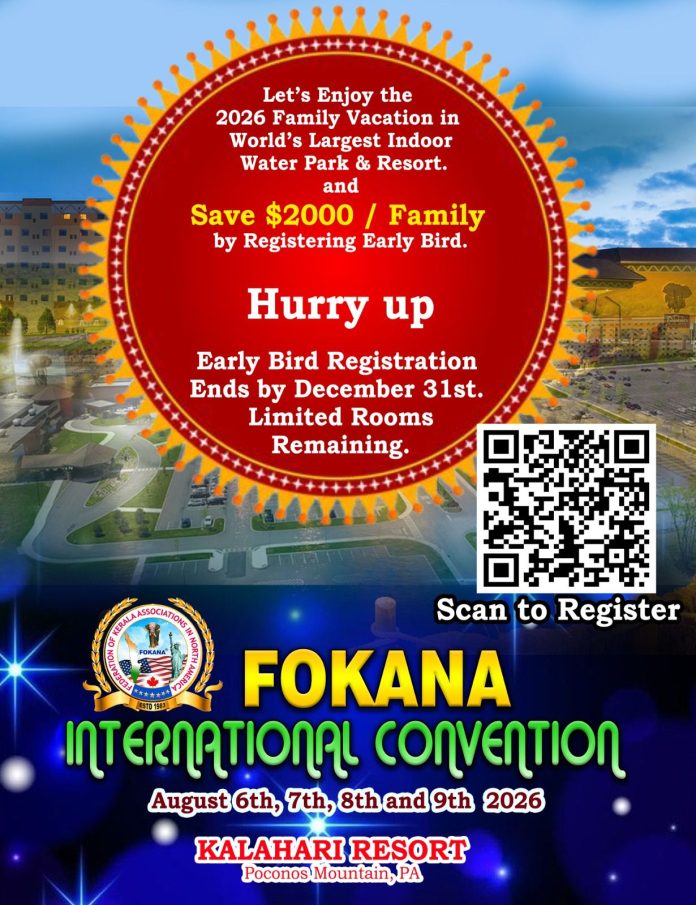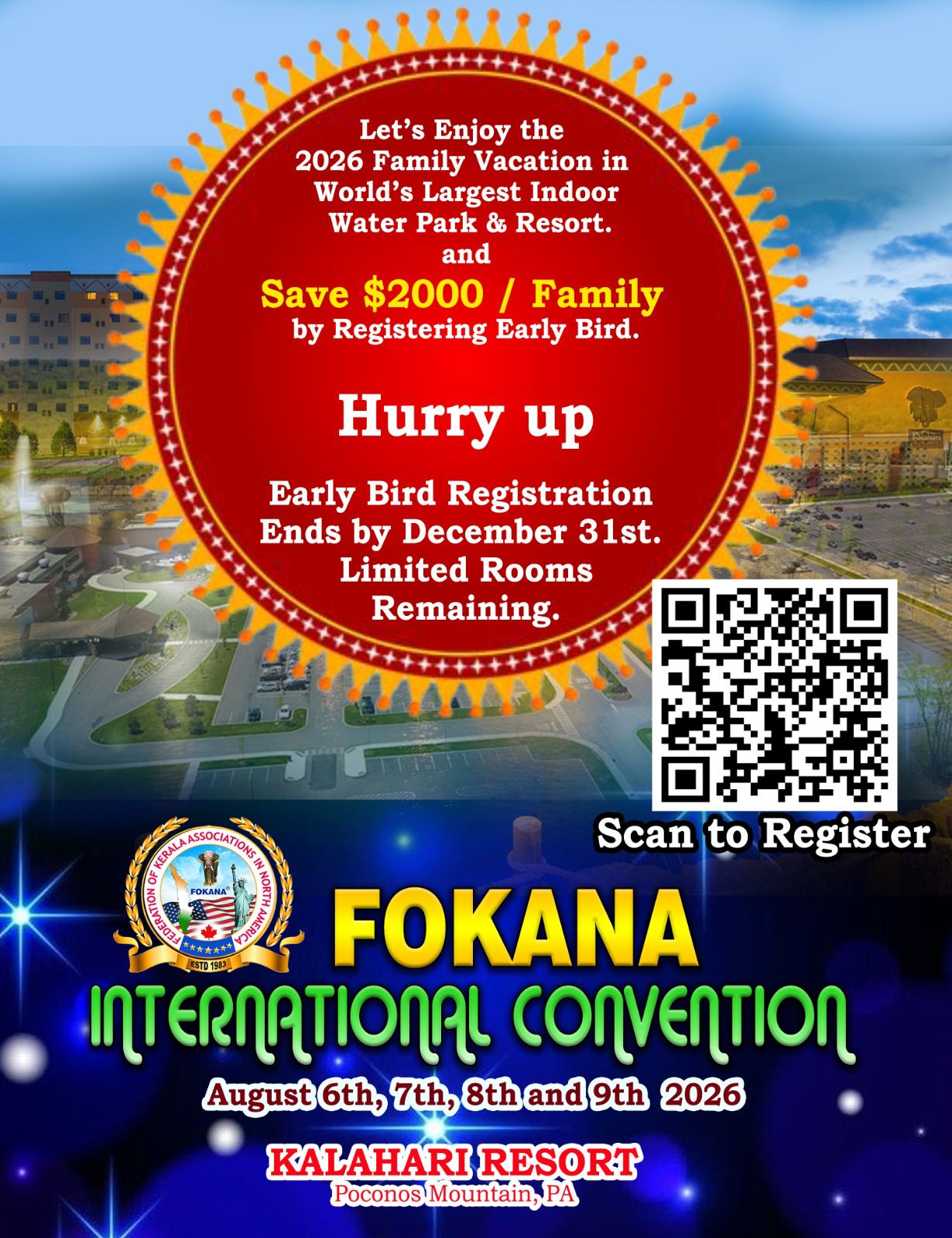 2025 ഡിസംബർ 31 വരെ മാത്രമേ ഈ റേറ്റിൽ രെജിസ്ട്രേഷൻ റേറ്റ് നൽകുകയുള്ളൂ.. അതിന് ശേഷം പുതിയ റേറ്റ് ആയിരിക്കും. താഴെകാണുന്ന ലിങ്കിൽ കൂടെയോ അല്ലെങ്കിൽ fokanaonline.org എന്ന വെബ്സൈറ്റിൽ നിന്നോ രജിസ്റ്റർ ചെയ്യാം.