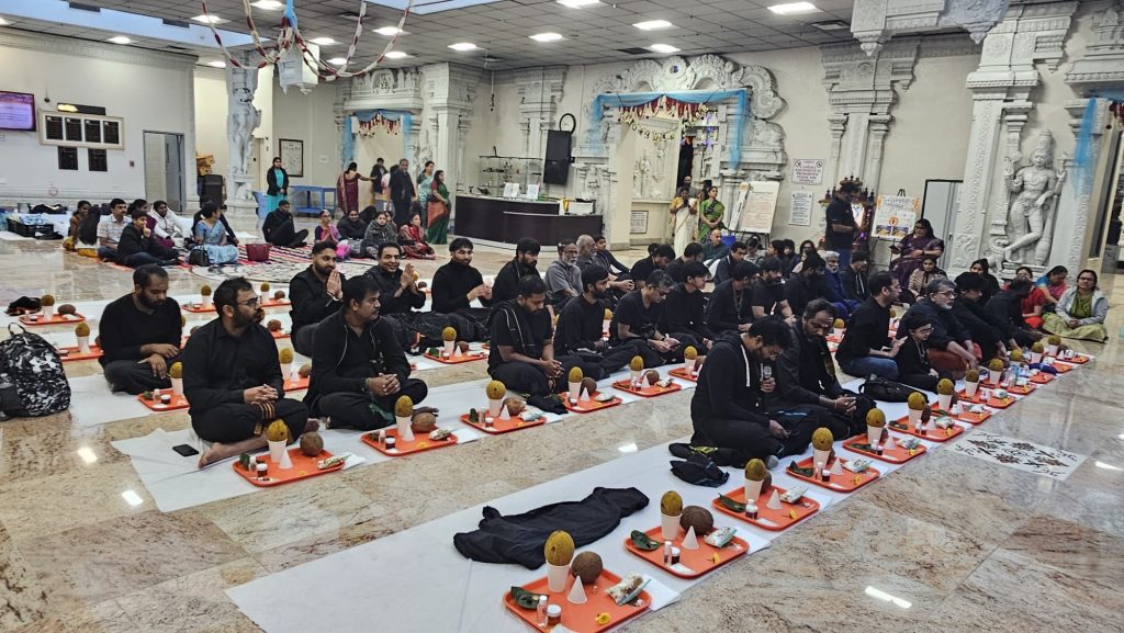 അന്നേദിവസം ക്ഷേത്രത്തിൽ തന്നെ ഇരുമുടി കെട്ടിയ ഭക്തർക്കായി പൂജകളും ചടങ്ങുകളും നടന്നു. മേരിലാൻഡ്, വിർജീനിയ, വാഷിംഗ്ടൺ ഡി.സി. മേഖലകളിലെ നിരവധി ഭക്തർ ഇരുമുടി തയ്യാറാക്കലിലും തീർത്ഥാടന ഒരുക്കങ്ങളിലും സജീവമായി പങ്കെടുത്തു. ചില ഭക്തർ ശയനപ്രദക്ഷിണം ഉൾപ്പെടെയുള്ള പ്രത്യേക വ്രതാചാരങ്ങളും നിർവ്വഹിച്ചു. പൂജകളും ദർശനവും പതിനെട്ടാം പടിയിറങ്ങുന്ന (പതിനെട്ടാംപടി ദർശനം) ചടങ്ങുകളും പൂർത്തിയായതിന് ശേഷം, ഭക്തർക്കായി ക്ഷേത്രത്തിൽ അന്നദാനവും ഒരുക്കിയിരുന്നു.