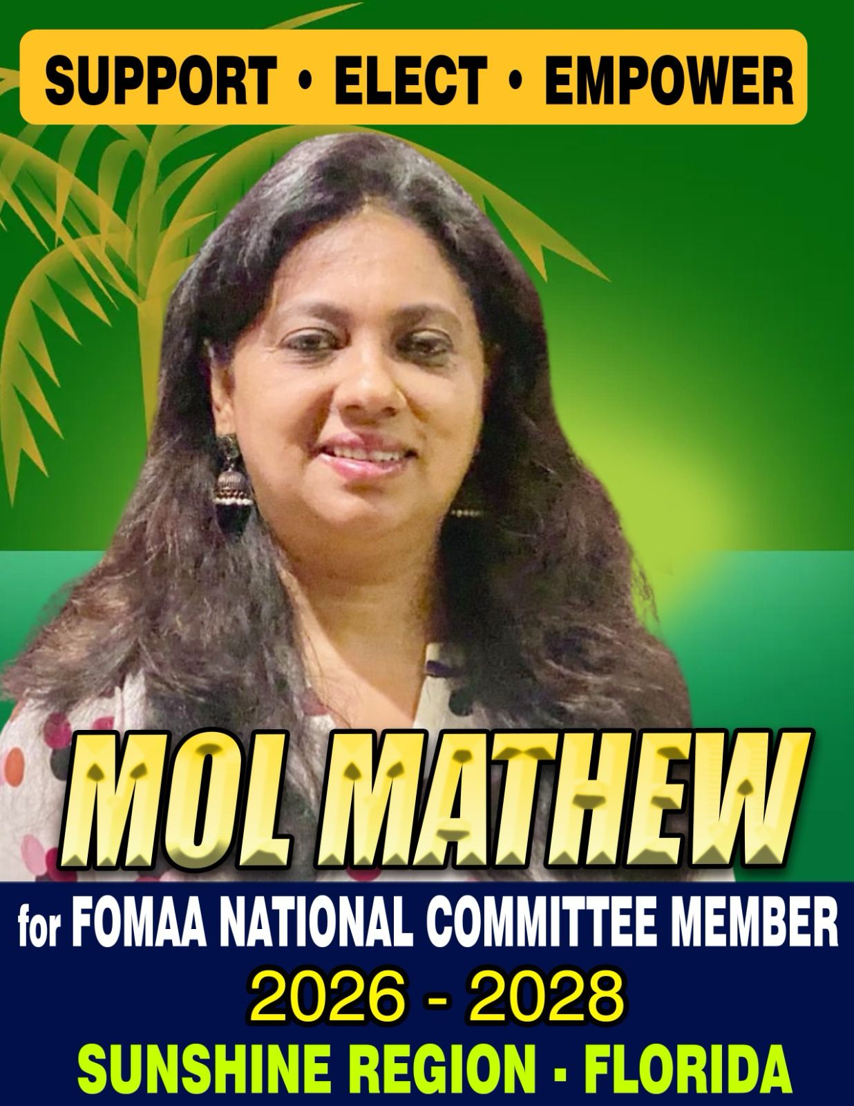 ഫോമയുടെ നാഷണൽ കമ്മറ്റിയിൽ ഒരു മികച്ച സ്ത്രീ സാന്നിധ്യമായി മാറാൻ മോൾ മാത്യൂവിന് കഴിയുമെന്ന് ഏവരുടെയും പിന്തുണ നൽകണമെന്നും മയാമി മലയാളി അസോസിയേഷൻ ഭാരവാഹികൾ അഭ്യർത്ഥിച്ചു.