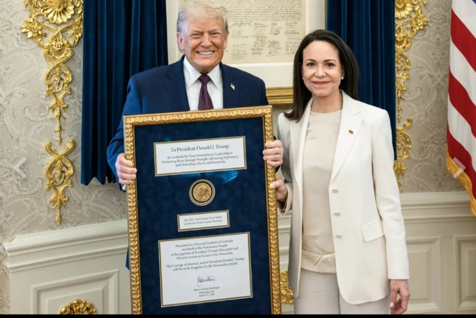 ദിവസങ്ങൾക്കു മുമ്പു തന്നെ കൂടിക്കാഴ്ചയ്ക്കിടെ തനിക്ക് ലഭിച്ച സമാധാനത്തിനുള്ള നൊബേൽ സമ്മാനം ട്രംപിന് കൈമാറുമെന്ന് മച്ചാഡോ സൂചന നൽകിയിരുന്നു. എന്നാൽ, നൊബേൽ സമ്മാനം റദ്ദാക്കാനോ മറ്റൊരാൾക്ക് കൈമാറാനോ സാധ്യമല്ലെന്ന് നോർവീജിയൻ നൊബേൽ ഇൻസ്റ്റിറ്റ്യൂട്ട് വ്യക്തമാക്കിയിരുന്നു. വെനസ്വേലയിൽ ഒളിവിൽക്കഴിഞ്ഞ മച്ചാഡോ കഴിഞ്ഞവർഷം നൊബേൽ സമ്മാനം സ്വീകരിക്കാനാണ് രാജ്യത്തിന് പുറത്തുവന്നത്.