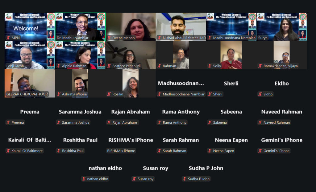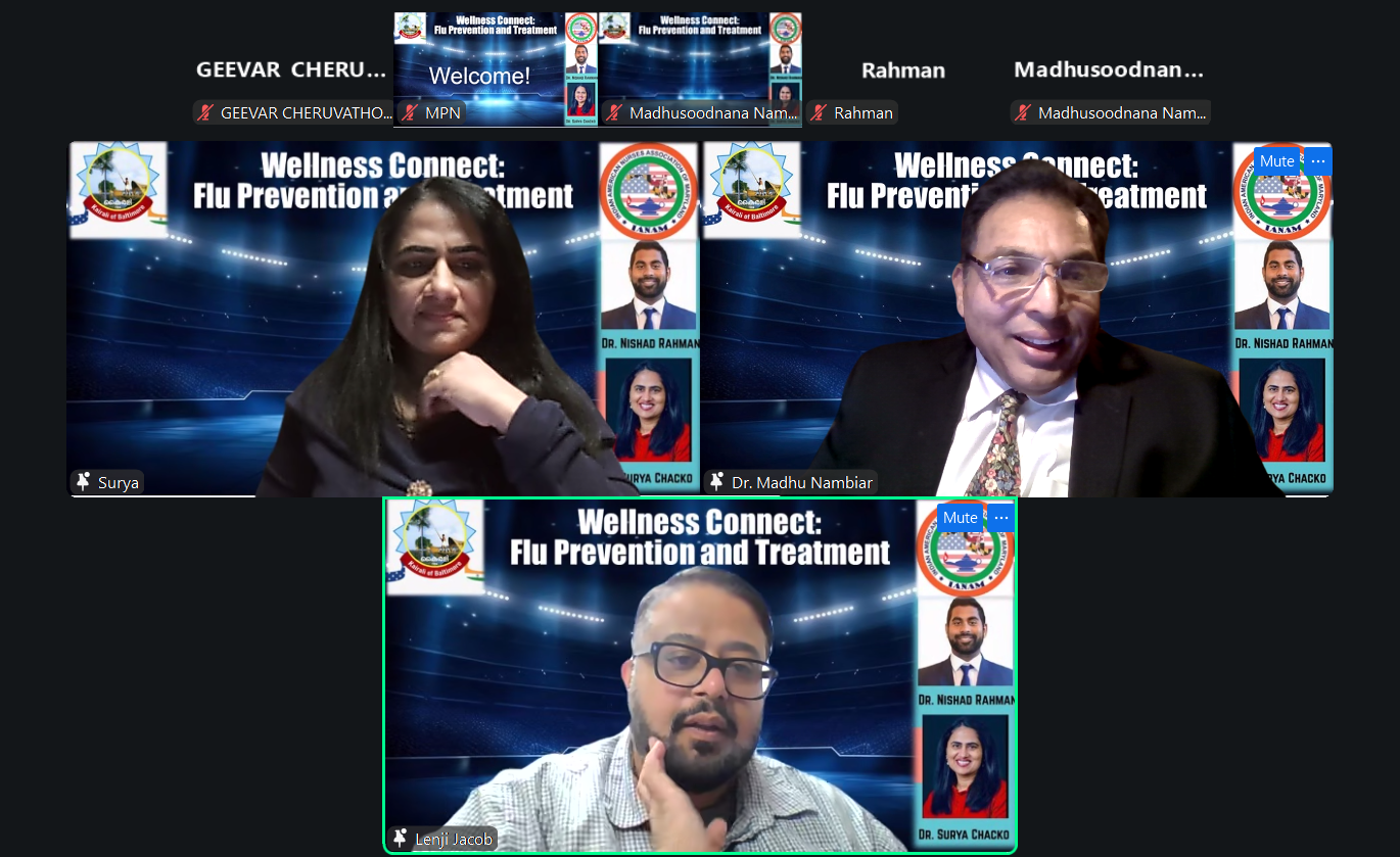 ബാൾട്ടിമോർ: ഫ്ലൂ വ്യാപനം ഉയർന്നുവരുന്ന ഈ കാലഘട്ടത്തിൽ, കുടുംബങ്ങളെ ആരോഗ്യബോധത്തോടെ ശക്തിപ്പെടുത്താൻ കൈകോർത്തു രണ്ട് പ്രമുഖ സംഘടനകൾ, കൈരളി ഓഫ് ബാൾട്ടിമോർ (KOB)യും ഇന്ത്യൻ അമേരിക്കൻ നഴ്സസ് അസോസിയേഷൻ ഓഫ് മേരിലാൻഡ് (IANAM)ഉം. ചേർന്ന് സംഘടിപ്പിച്ച “വെൽനെസ് കണക്ട്: ഫ്ലൂ പ്രിവൻഷൻ ആൻഡ് ട്രീറ്റ്മെന്റ്” എന്ന ഓൺലൈൻ പരിപാടി സമൂഹത്തിന്റെ ആരോഗ്യസുരക്ഷയെ ലക്ഷ്യമിട്ട ഒരു കരുതലിന്റെ വേദിയായി മാറി.