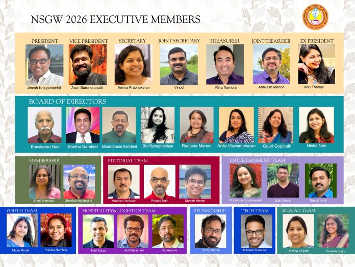 2026-ൽ പ്രവേശിക്കുമ്പോൾ, “ലോകാഃ സമസ്താഃ സുഖിനോ ഭവന്തു” എന്ന ശാശ്വത പ്രാർത്ഥന NSGW-യുടെ ഓരോ പ്രവർത്തനത്തിലും പ്രതിധ്വനിക്കുന്നു. പുതിയ നേതൃത്വം എല്ലാ അംഗങ്ങളെയും ഐക്യത്തോടെ, പാരമ്പര്യത്തോടും സേവനാത്മകതയോടും കൂടിയ ഒരു വർഷം രൂപപ്പെടുത്താൻ ക്ഷണിക്കുന്നു.