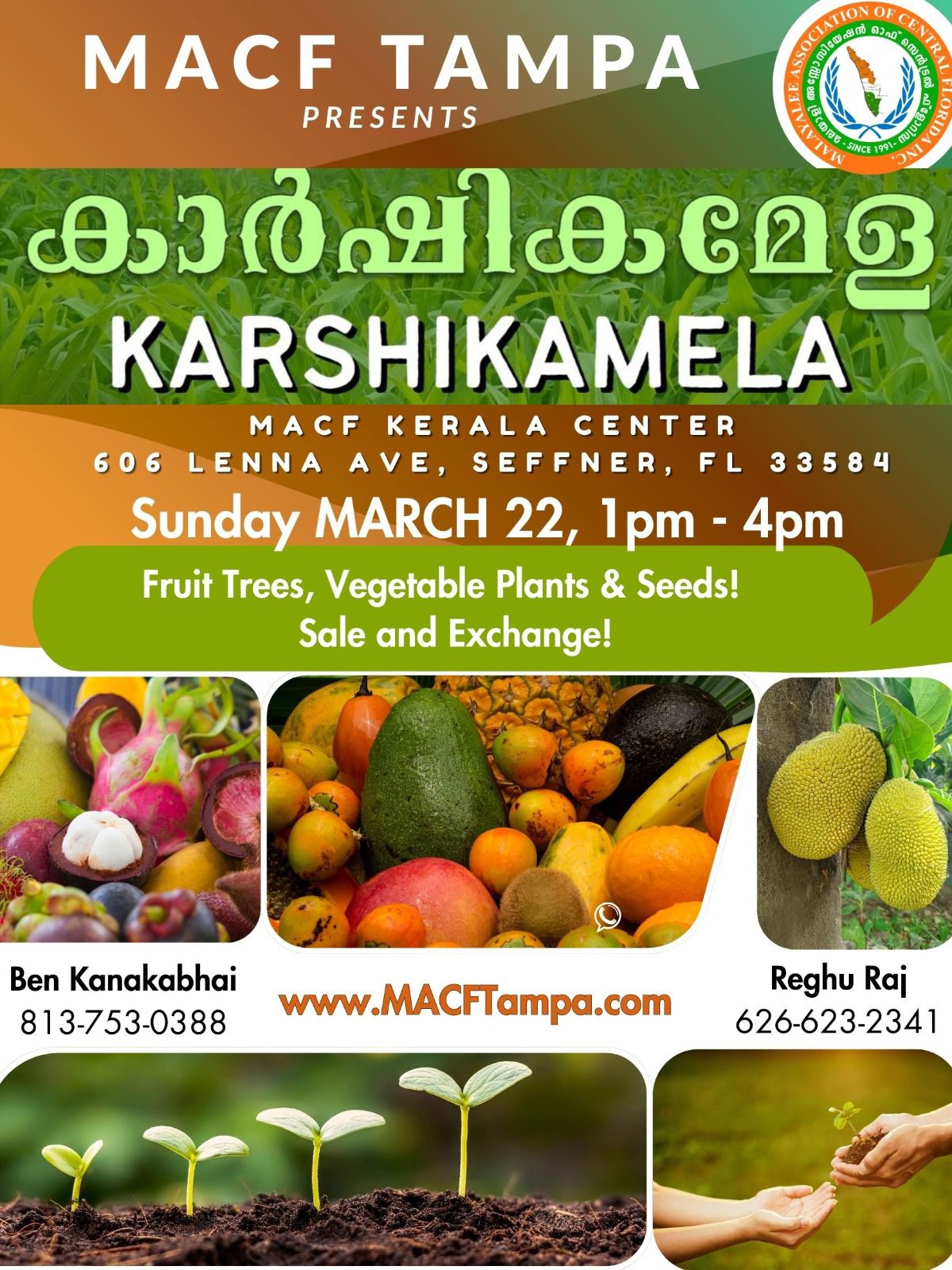 ഫ്ലോറിഡ : സെൻട്രൽ ഫ്ലോറിഡയിലെ മലയാളി സമൂഹത്തിന് കാർഷിക പാരമ്പര്യത്തിന്റെ മഹത്വം പകർന്ന് Malayalee Association of Central Florida (MACF) സംഘടിപ്പിക്കുന്ന കാർഷികോത്സവം 22ന് വൈകുന്നേരം 1 മുതൽ 4 വരെ MACF കേരള സെന്ററിൽ നടക്കും. കൃഷിയെ ജീവിതരീതിയായി കാണുന്ന മലയാളികളുടെ ആത്മബന്ധം പുതുക്കുന്ന വേദിയാകും ഈ മേള. കേരളത്തിന്റെ സമ്പന്നമായ കാർഷിക പാരമ്പര്യവും പ്രകൃതിയോടുള്ള ആദരവും വിദേശഭൂമിയിലും നിലനിർത്താനുള്ള MACFയുടെ ശ്രമമാണ് ഈ ഉത്സവം. ഫലവൃക്ഷങ്ങൾ, പച്ചക്കറി ചെടികൾ, വിവിധതരം വിത്തുകൾ, സസ്യവിനിമയം എന്നിവ ഉൾപ്പെടെ വൈവിധ്യമാർന്ന സസ്യശേഖരം മേളയിൽ ലഭ്യമാകും.