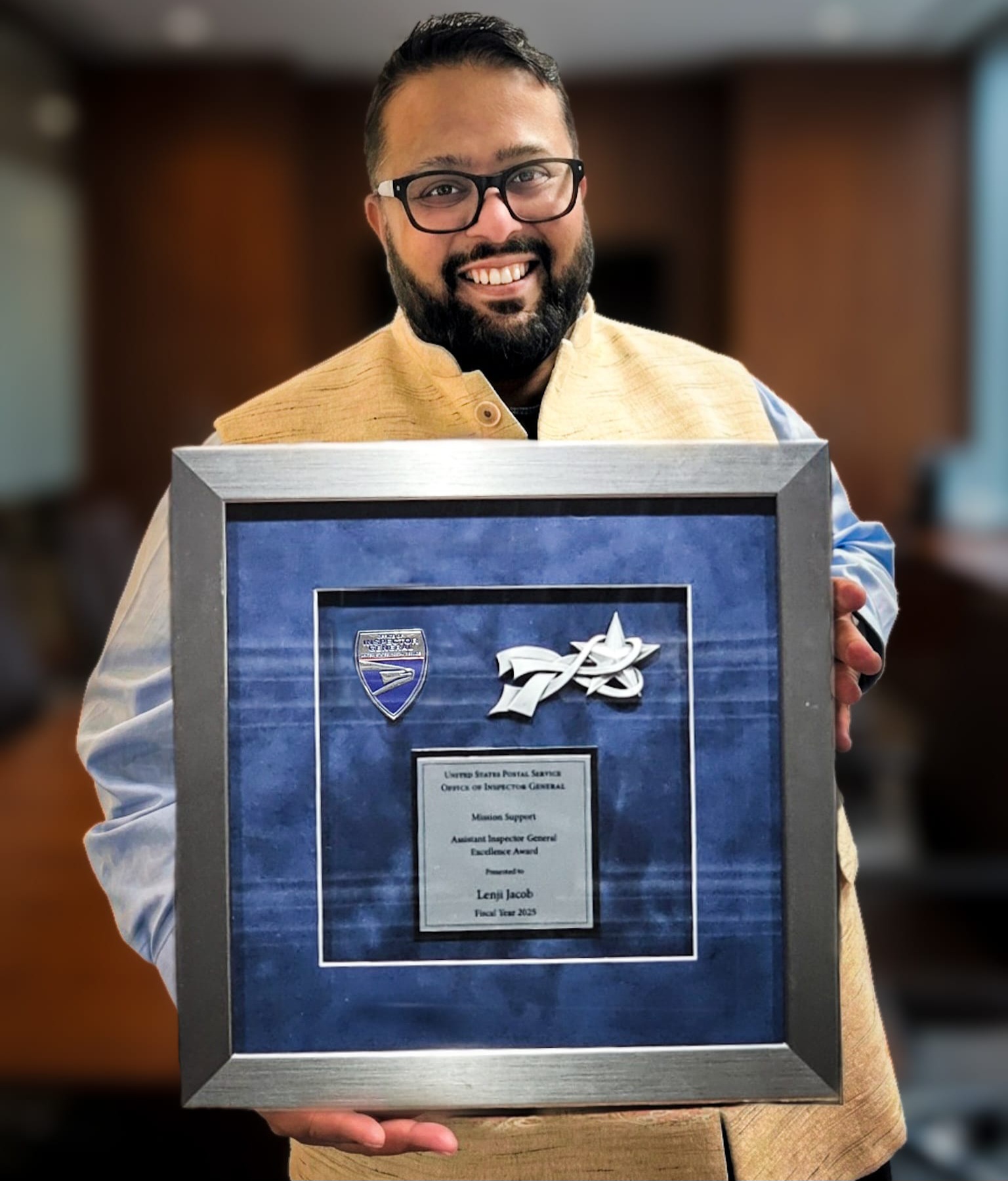 USPS OIG‑ന്റെ ദൗത്യനിർവഹണത്തിന് നിർണായകമായ പിന്തുണാ സംവിധാനങ്ങൾ — സാമ്പത്തിക മേൽനോട്ടം, മാനവവിഭവശേഷി മാനേജ്മെന്റ്, സ്ട്രാറ്റജിക് പ്ലാനിംഗ് തുടങ്ങിയ മേഖലകളിൽ — അസാധാരണ പ്രകടനം കാഴ്ചവെക്കുന്നവർക്കാണ് ഈ അവാർഡ് നൽകുന്നത്. 2025 സാമ്പത്തിക വർഷത്തിൽ, ഈ മേഖലയിൽ ഏറ്റവും ശ്രദ്ധേയമായ സംഭാവനകൾ നൽകിയതിന്റെ അടിസ്ഥാനത്തിലാണ് ലെൻജി ജേക്കബ് തിരഞ്ഞെടുക്കപ്പെട്ടത്.
