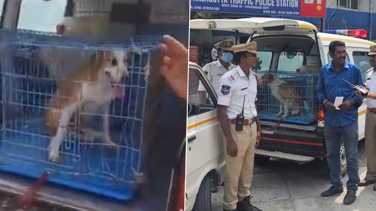 ഗുരുതരാവസ്ഥയിലുള്ള രോഗിയാകും വണ്ടിക്കുള്ളിലെന്ന് കരുതി പെട്ടെന്ന് പരിശോധിക്കാനെത്തിയ പൊലീസുകാർ വളർത്തുനായയെ കണ്ട് ഞെട്ടി.നായയെ ശസ്ത്രക്രിയക്കായി മഡിനഗുഡയിലേക്ക് കൊണ്ടുപോവുകയാണെന്നാണ് ഡ്രൈവറായ ലക്ഷ്മിനാരായണൻ പൊലീസിനോട് പറഞ്ഞത്.