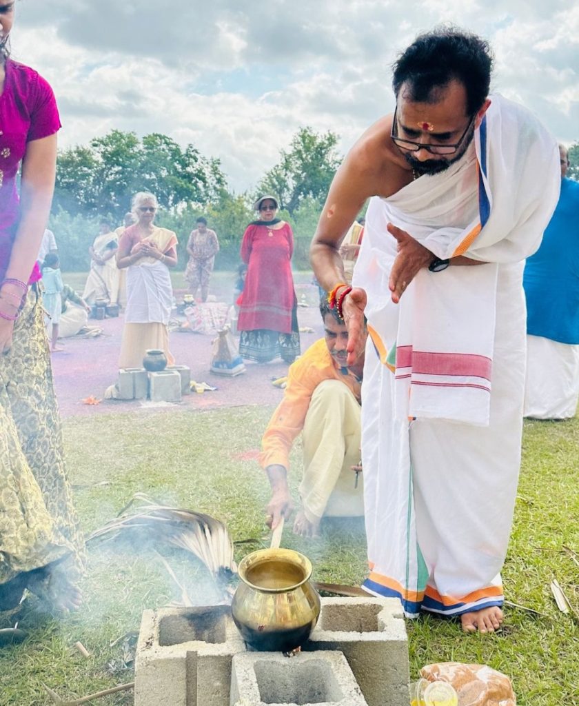 ഇലക്ട്രിക് സ്റ്റൗവും മാത്രമായി വളർന്ന അമേരിക്കയിലെ പുതുതലമുറയ്ക്ക്, മൂന്നു കല്ലുകൾ കൂട്ടിയ നാടൻ അടുപ്പിലും ഓല, കൊതുമ്പ്, വിറക് എന്നിവ ഉപയോഗിച്ച് തികച്ചും ഓർഗാനിക് രീതിയിൽ പായസം പാകം ചെയ്യാനുള്ള ഭാഗ്യം ലഭിച്ചു. ഭക്തിസാന്ദ്രമായ അന്തരീക്ഷത്തിൽ, മേൽശാന്തി ശ്രീ ഹരിപ്രസാദ് പണ്ഡാര അടുപ്പിൽ നിന്നു പൊങ്കാല അടുപ്പിലേക്ക് തീ പകർന്നുകൊണ്ട് ചടങ്ങിന് തുടക്കം കുറിച്ചു.
